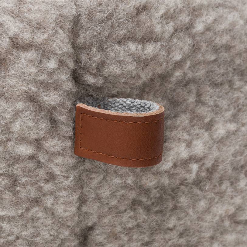 Det lille greb i ægte læder, giver hundesengen en fin design detalje.