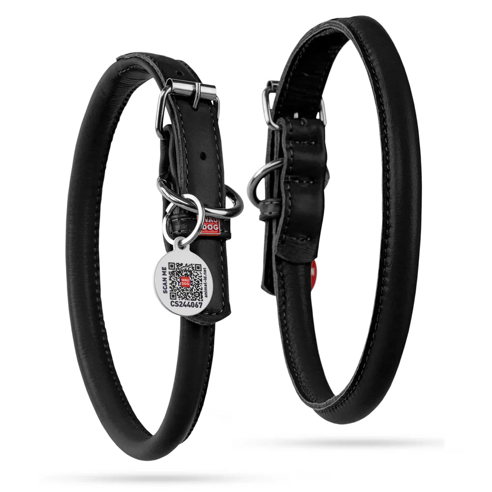 Waudog Rundsyet Læderhalsbånd - Sort - PupDeluxe.dk